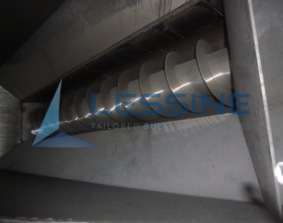 This conveyer allows horizontal handling as well as angling up to vertical. It consists of an Archimedes’ spiral that moves the product forward inside a closed sealed bucket.