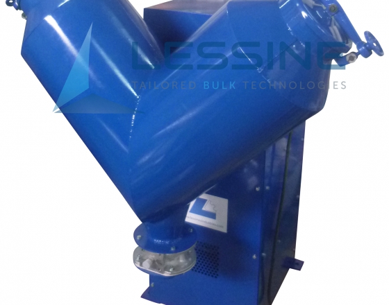 Une cuve formée de 2 cylindres en V tournant autour d'un axe horizontal assure une homogénéisation parfaite et rapide des composants du mélange. L'entrée et la sortie du produit, dans la pointe du V, se réalisent aisément et sans poussière. Une injection de liquide peut être mise en place pour obtenir une granulation de la poudre pré-mélangée, un coating des granulés ou pour un système de nettoyage automatique.