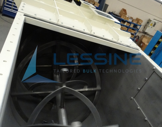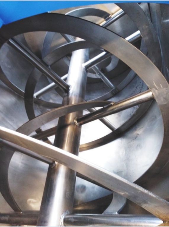 Un rotor à rubans hélicoïdaux (simple, double ou triple effet) force les différentes couches de produit à se mélanger intimement. L'orifice de vidange est central ou en bout, suivant l'application.