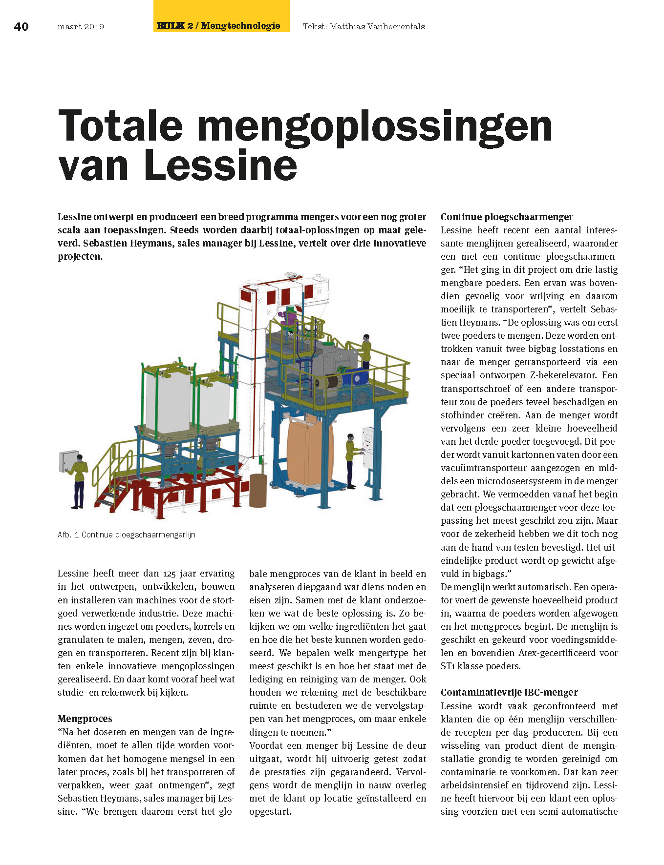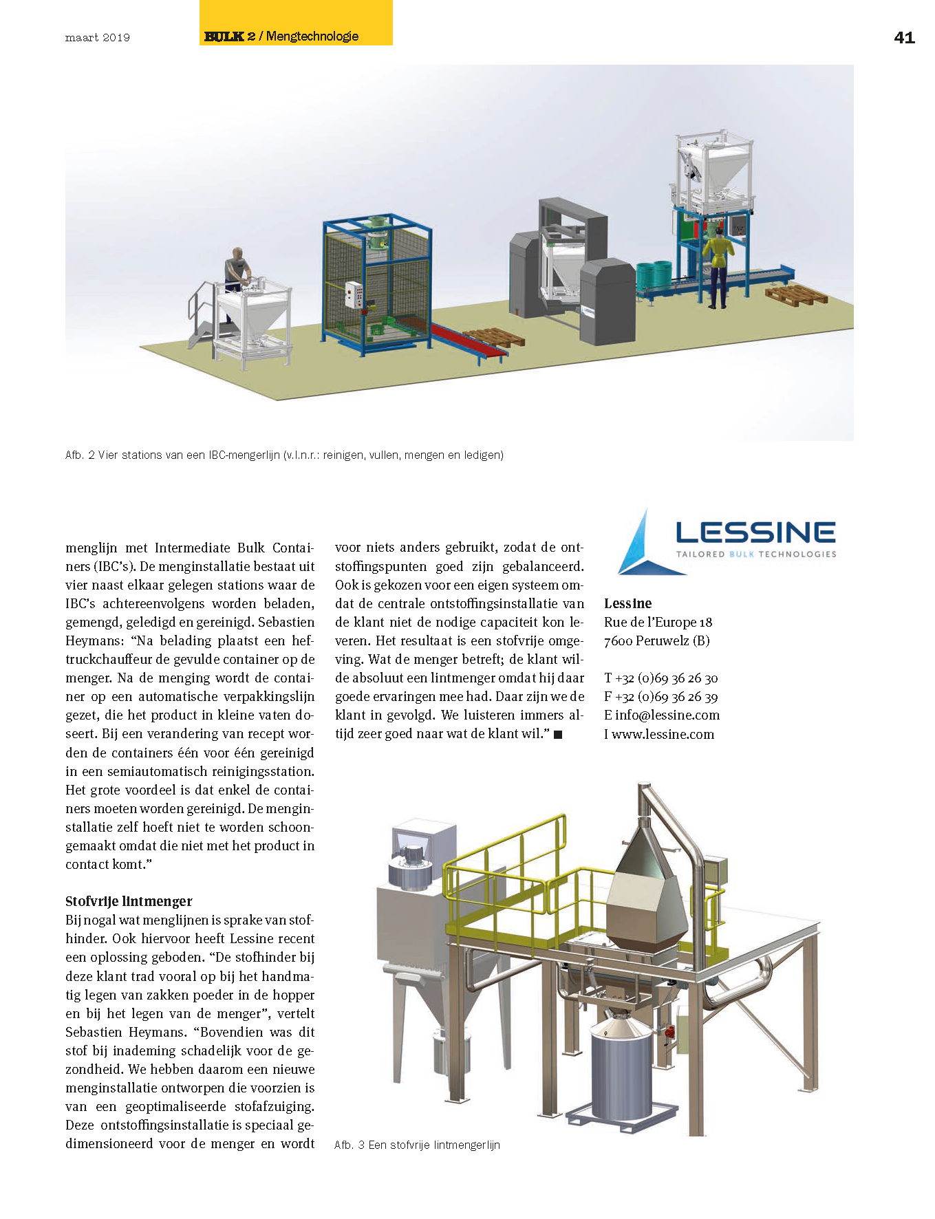 Al sinds jaar en dag bewijzen container-mixers (ook wel bekend als drum-mengers of tumblers) hun waarde bij het productvriendelijk mengen van poedervormige componenten. Ook worden de machines vaak ingezet voor het homogeniseren van enkelvoudige producten waarbij het erom gaat een gelijkmatige verdeling van deeltjesgrootten tot stand te brengen. Lessine uit Peruwelz (B), specialist in de handling en verwerking van poeders, heeft de afgelopen jaren in talloze toepassingen de voordelen van container-mixers ervaren. Een sterke eigenschap van dit mengprincipe is dat voor elke specifieke uitdaging een ideale menger-configuratie is te realiseren.